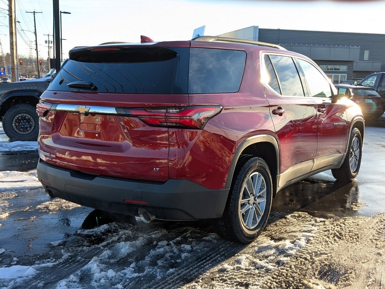Check out this 2023 Chevrolet Traverse LT Leather. Its Automatic transmission and Gas V6 3.6L/217 engine will keep you going. This Chevrolet Traverse comes equipped with these options: WHEELS, 18-INCH (45.7 CM) BRIGHT SILVER-PAINTED ALUMINUM (STD), TRANSMISSION, 9-SPEED AUTOMATIC (STD), TIRES, P255/65R18 ALL-SEASON BLACKWALL (STD), SEATS, FRONT BUCKET (STD), SEATING, 7-PASSENGER (2-2-3 SEATING CONFIGURATION) (STD), RADIANT RED TINTCOAT, NOT EQUIPPED WITH REAR PARK ASSIST, SEE DEALER FOR DETAILS. Does not include later dealer retrofit. (Beginning October 17, 2022, certain vehicles will be forced to include (060) Not Equipped with Rear Park Assist, which removes Rear Park Assist. Does not include later dealer retrofit. See dealer for details or the window label for the features on a specific vehicle.), LT LEATHER PREFERRED EQUIPMENT GROUP Includes Standard Equipment, LICENSE PLATE FRONT MOUNTING PACKAGE (will be forced on orders with ship-to states that require a front license plate), and JET BLACK, LEATHER-APPOINTED SEAT TRIM. Test drive this vehicle at Tucker Chevrolet, 1340 Atlantic Highway, Waldoboro, ME 04572.